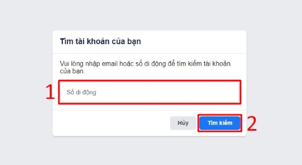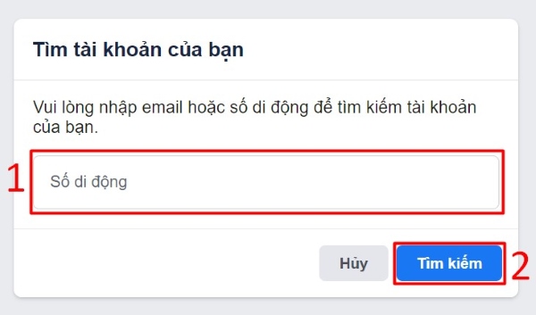 Bước 3: Đăng xuất tài khoản, tiếp đến nhấp vào liên kết facebook.com/recover, sau đó nhập số điện thoại hoặc email bạn vừa thêm ở bước trên rồi chọn Tìm kiếm.