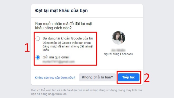 Bước 2: Lựa chọn phương thức để nhận mã đặt lại mật khẩu > chọn Tiếp tục.