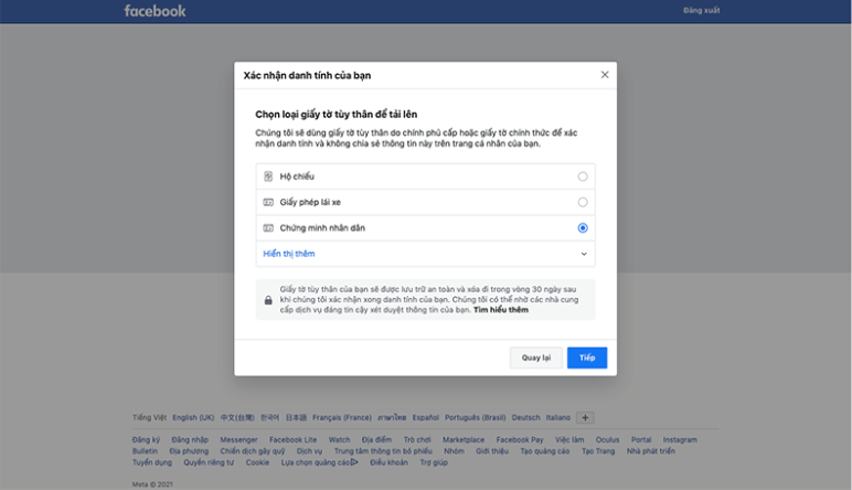 Nếu những cách trên không giúp bạn lấy lại mật khẩu Facebook khi mất số điện thoại thfi cách cuối cùng là bạn phải cần đến sự trợ giúp từ Facebook. Thông qua các loại giấy tờ như CMND, GPLX, hộ chiếu,… Facebook sẽ xác nhận có đúng bạn là chủ tài khoản hay không, từ đó giúp bạn đăng nhập và thay đổi mật khẩu mới.
