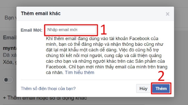 Bước 2: Chọn phần Thêm email hoặc số điện thoại di động khác để tiến hành thêm email hoặc số điện thoại mới của bạn, sau đó chọn Thêm.