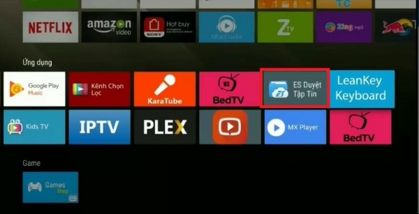 Bước 1: Bật Tivi Samsung lên > truy cập vào mục Ứng dụng > chọn ES Duyệt Tệp Tin.