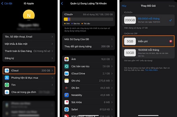 Để hủy gói dung lượng iCloud, bạn làm theo những bước dưới đây: