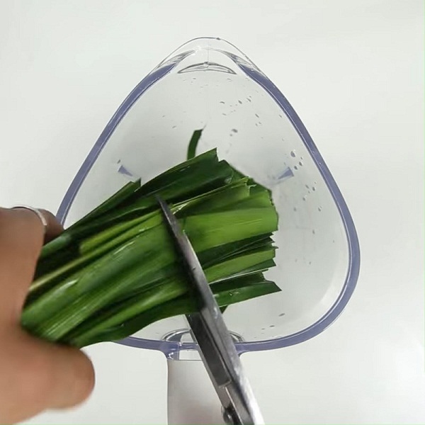 – Lá dứa: Rửa sạch rồi cắt khúc nhỏ. Sau đó, cho vào máy xay sinh tố rồi thêm 1.5 lít nước lọc và xay nhuyễn.