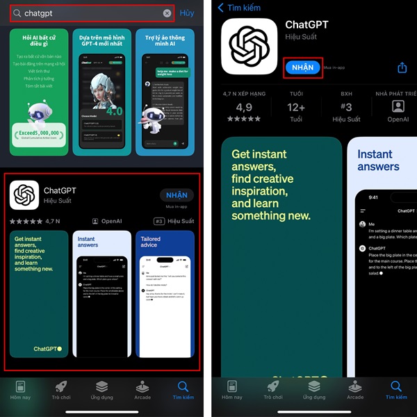 Cách nói chuyện với ChatGPT thông qua giọng nói không hề khó. Trước hết, bạn hãy nhập từ khóa ChatGPT vào ô tìm kiếm và tải ứng dụng về điện thoại của mình.