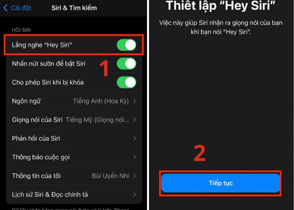 Bước 1: Truy cập vào phần Cài đặt. Sau đó ấn chọn vào phần Siri & Tìm kiếm. Tiếp theo hãy kích hoạt mục Lắng nghe “Hey Siri” để bắt đầu dùng trợ lý ảo.