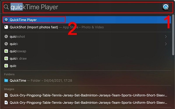 Bước 1: Bạn mở công cụ tìm kiếm và tìm ứng dụng QuickTime Player.