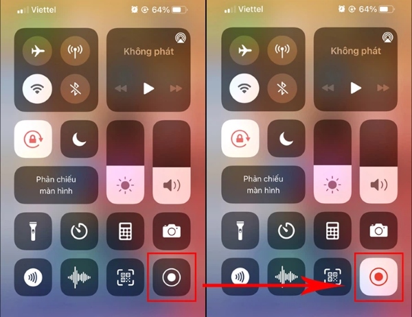 Bước 1: Mở Trung tâm điều khiển trên điện thoại iPhone > nhấn chọn biểu tượng ghi màn hình.