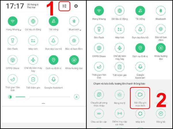 Bước 1: Bạn bở cài đặt nhanh trên thanh thông báo > chọn tính năng Ghi màn hình và bắt đầu ghi.