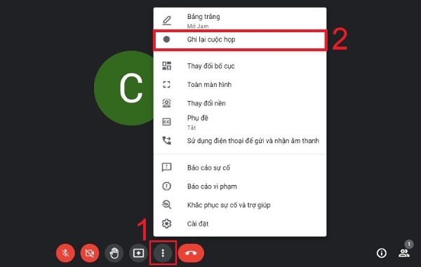 Bước 3: Chọn tiếp vào mục “Ghi lại cuộc họp”.