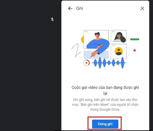 Màn hình ghi máy tính sau đó sẽ hiển thị biểu tượng ghi màu đỏ tại góc trái. Khi muốn dừng ghi, bạn chỉ cần nhấn chọn “Dừng ghi”. Bản ghi sau đó sẽ được lưu tự động vào Google Drive của bạn.
