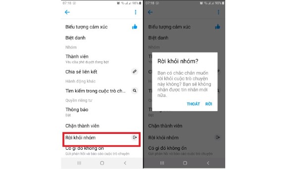 Lưu ý: Thao tác rời nhóm Messenger có bản chất khác biệt hoàn toàn với việc thực hiện xóa bỏ nhóm chat. Vì khi xóa đi cuộc trò chuyện thì người dùng vẫn sẽ tiếp tục nhận được thông báo tin nhắn từ những thành viên khác. Còn việc rời khỏi nhóm sẽ khiến cho tài khoản của bạn không còn nhận được bất cứ thông báo gì, từ nhóm hội thoại đó nữa.