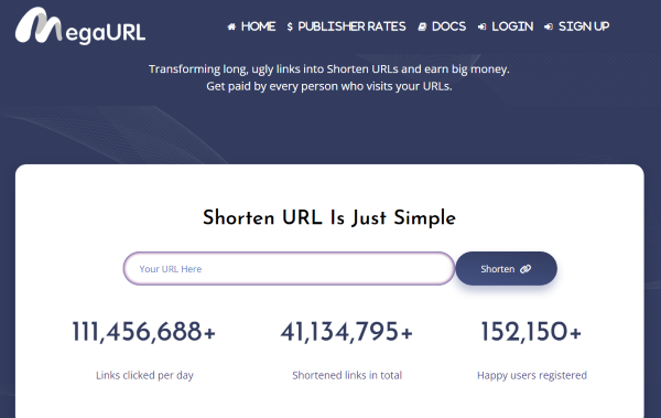 MegaURL.in là trang web rút gọn link ra đời vào thời điểm năm 2018 và đạt kỷ lục sử dụng cao nhất tại thị trường Việt Nam. Cũng tương tự như dịch vụ AdF.ly, MegaURL.in là một trang web uy tín và thanh toán đều đặn đối với các thành viên tham gia.