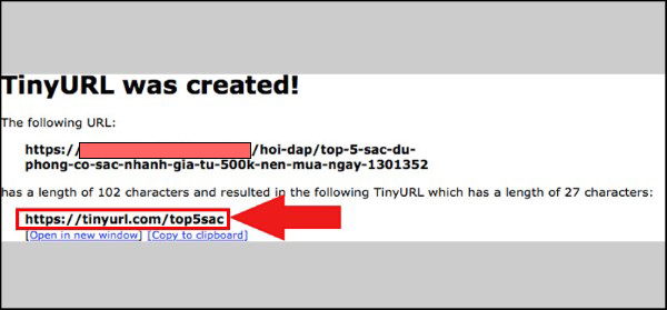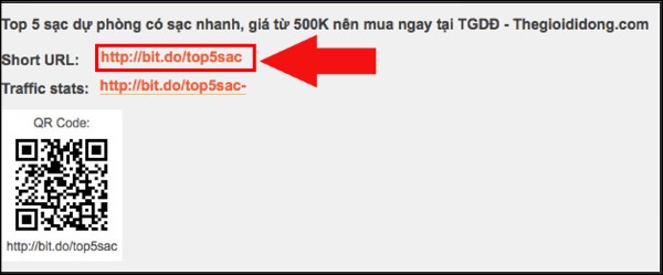 Sau khi thực hiện rút gọn link chúng ta sẽ thu được kết quả như hình minh họa dưới đây: