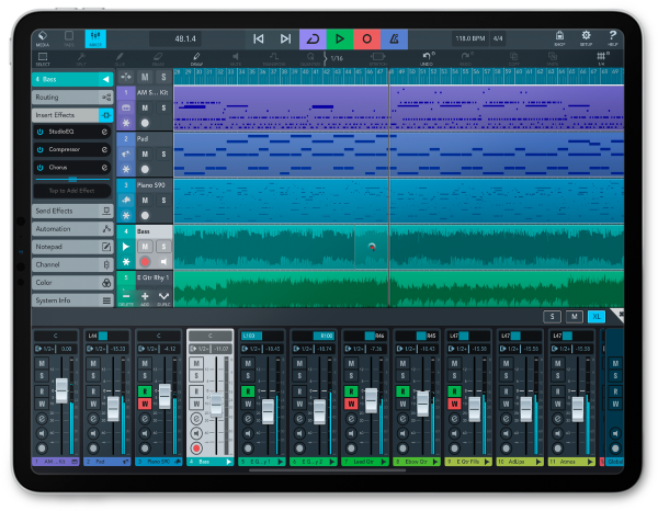 Không những thế, ứng dụng này cũng cho phép xuất và chia sẻ không giới hạn các file âm thanh từ nền tảng iTunes. Bạn cũng có thể sáng tạo ra được những bản nhạc theo sở thích cá nhân riêng khi dùng Cubasis để pha trộn với 10 bộ xử lý hiệu ứng đặc biệt.