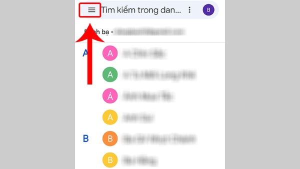 Bước 1: Bạn mở vào Danh bạ trên điện thoại Xiaomi > chọn vào biểu tượng dấu ba gạch ngang tại góc trái phía trên cùng.