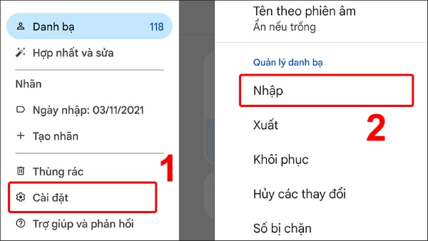 Bước 2: Chọn tiếp vào Cài đặt > chọn Nhập.