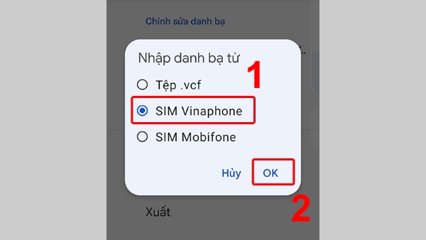 Bước 3: Chọn SIM đang lưu danh bạ muốn sao chép sang điện thoại > nhấn OK.