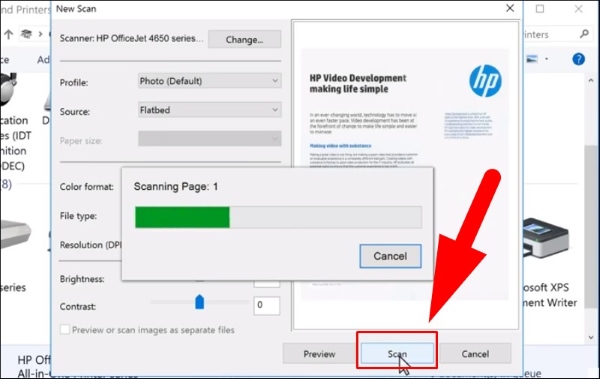 - Bước 4: Chọn Preview > quét chọn và điều chỉnh vùng tài liệu Scan > chọn lại nút Scan.