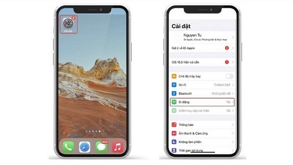 Bước 1: Vào Cài đặt/ Di động trên iPhone.