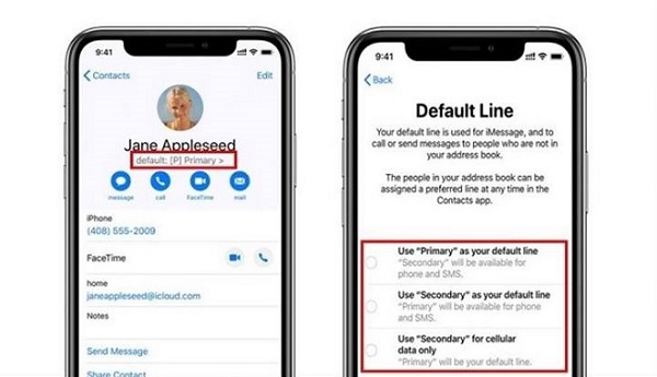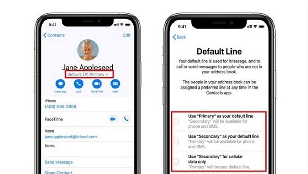 – “Use Secondary as your default line” (Sử dụng SIM Phụ làm đường dây mặc định): Khi chọn tùy chọn này thì SIM Phụ sẽ thực hiện cuộc gọi, SMS, dữ liệu di động, iMessage, FaceTime còn SIM chính là cuộc gọi và tin nhắn SMS.