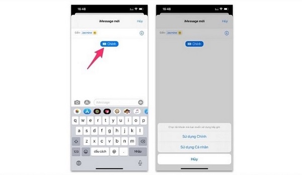 – Gửi tin nhắn iMessage với SIM mong muốn: Cũng giống như thực hiện cuộc gọi, khi soạn tin nhắn thì màn hình sẽ hiển thị tên SIM. Bạn chỉ cần nhập vào tên SIM và chọn SIM mà bạn muốn gửi tin nhắn là được.