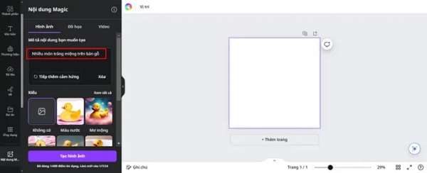 Bước 3: Tại bước này bạn tiến hành nhập nội dung thiết kế mà bạn muốn tạo, sau đó click vào Tạo hình ảnh để Canva AI bắt đầu quá trình chỉnh sửa.