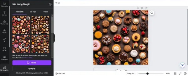 Bước 4: Ở bước này bạn tiến hành chọn kết quả mình thấy ưng nhất. Còn nếu bạn vẫn chưa hài lòng thì nhấn chọn Tạo lại để Canva chỉnh những bức ảnh khác.