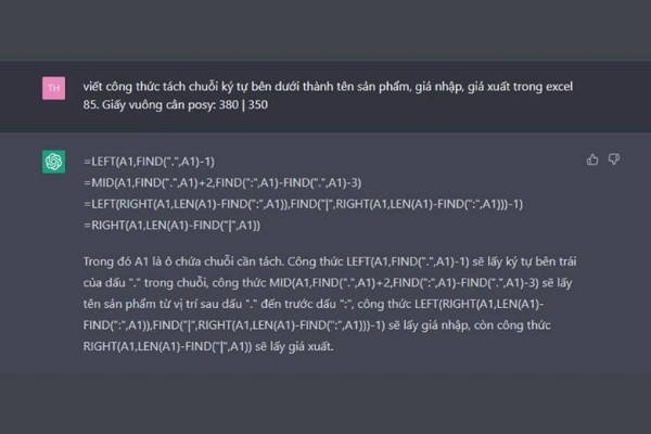 Chat GPT sẽ giúp việc học Exel của bạn hiệu quả và nhanh chóng hơn rất nhiều, đặc biệt là với các hàm tính khó trong Excel, bạn có thể sử dụng công cụ này. Việc bạn cần làm chỉ là nhập nội dung yêu cầu và chờ đợi sự hướng dẫn từ phía chatbot AI.
