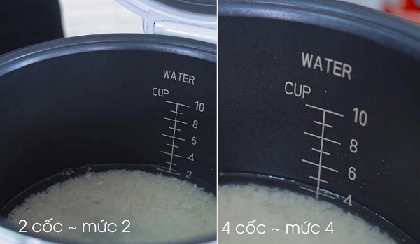 – Nồi cơm điện dung tích 0.6 lít nên đong 2 cốc gạo