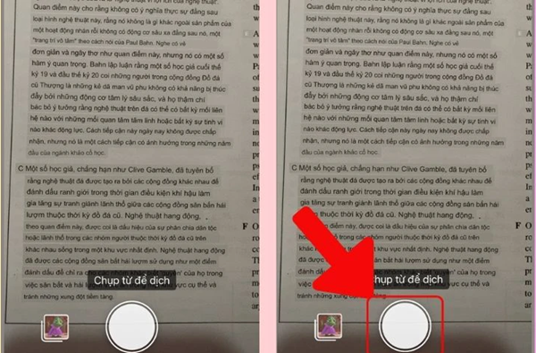 – Dịch văn bản trực tiếp bằng camera: Hướng camera iPhone vào khu vực văn bản bạn muốn dịch. Sau khi căn chỉnh cho rõ nét, bạn nhấn nút Chụp nằm ngay giữa màn hình. Ứng dụng sẽ tiến hành quét nhanh nội dung và hiển thị ngay kết quả dịch bằng ngôn ngữ đích.