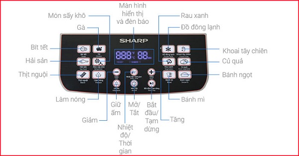 Các nút chức năng của nồi chiên không dầu Sharp