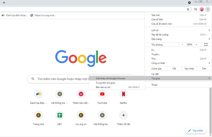 Bước 1: Nhấn vào nút 3 chấm ở góc bên phải trên cùng của trình duyệt -> chọn vào “Trợ giúp” -> Chọn “Giới thiệu về Google Chrome” để chắc chắn bạn đã cài đặt trình duyệt phiên bản mới nhất.