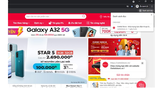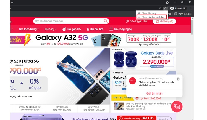 Bước 4: Sau đó bạn chỉ cần truy cập vào một trang web bất kỳ hoặc trang mình hay đọc để lưu lại. Để lưu lại bạn chỉ cần nhấn vào ngôi sao trên thanh công cụ -> chọn “Thêm vào danh sách đọc”.