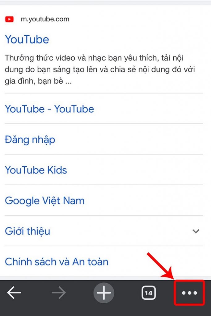Bước 1: Vào website mà bạn muốn lưu lại để tiện cho lần sau đọc rồi chọn vào biểu tượng 3 chấm ở góc dưới cùng bên phải của màn hình.