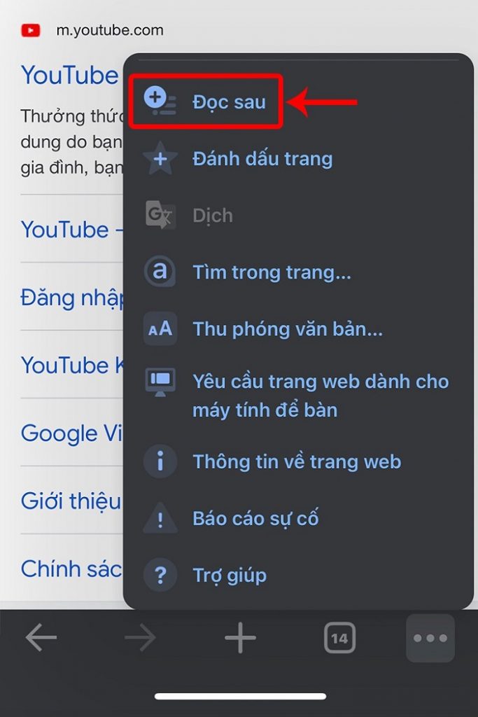 Bước 2: Sau đó chọn vào “Đọc sau” để tiến hành lưu lại trang web và lần sau có thể mở nó từ đây mà không cần phải nhập lại nữa.