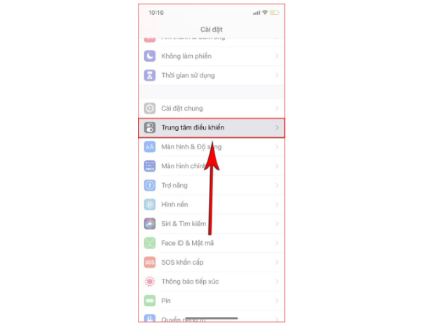 – Cuộn xuống và chọn Trung tâm điều khiển.