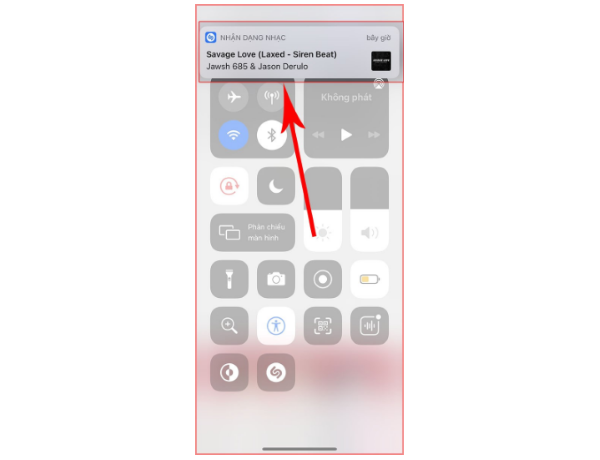 – Khi nghe một bài hát muốn nhận dạng, mở Trung tâm điều khiển bằng cách: