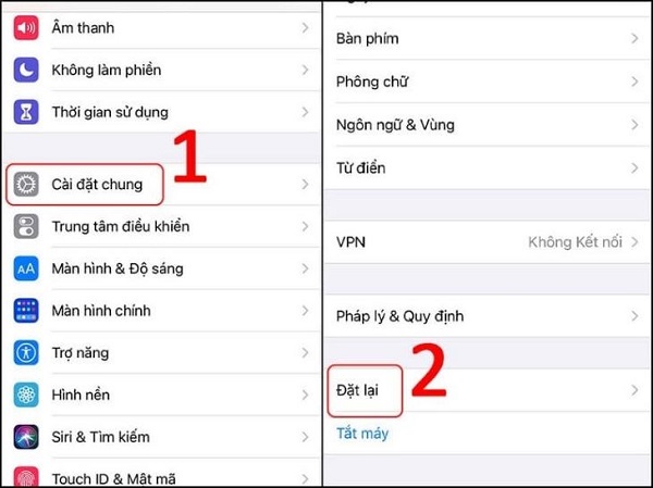 Bước 1: Bạn nhấn vào mục Cài đặt >> Cài đặt chung >> Đặt lại.
