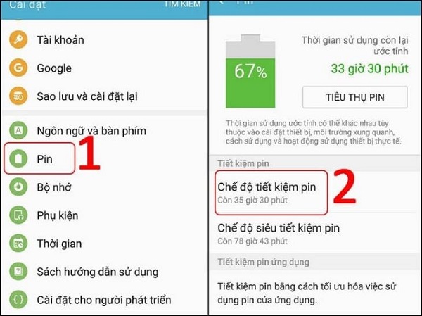 Cách tắt trên điện thoại Android như sau: Cài đặt >> Pin >> Chế độ tiết kiệm pin.
