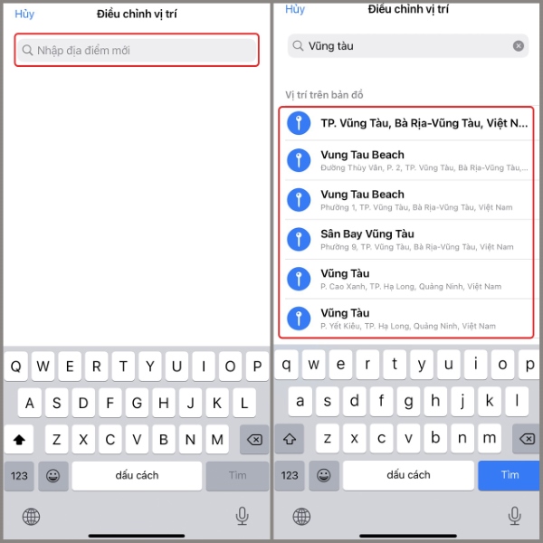 Bước 3: Sau đó, bạn nhập vị trí và nhấn chọn địa điểm muốn thay đổi.