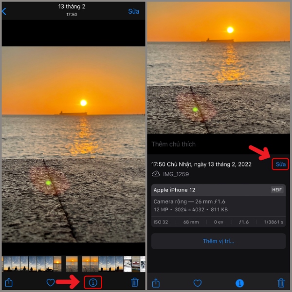 Bước 2: Nhấn chọn vào mục Info (i) phía dưới > chọn tiếp Sửa.