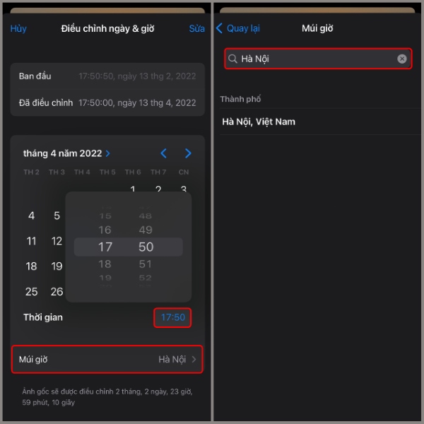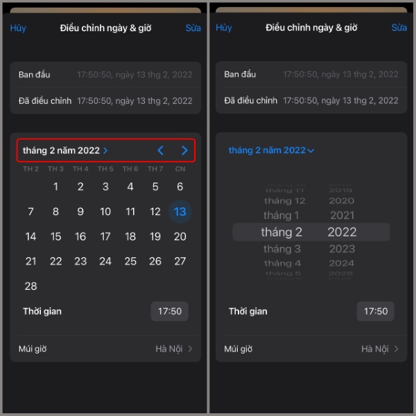 Bước 3: Tiếp theo bạn tiến hành chỉnh sửa thời gian ngày, tháng và năm muốn thay đổi.