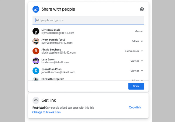 Tính năng chia sẻ dữ liệu nhanh chóng chỉ bằng một đường link liên kết của Google Drive, giúp tiết kiệm rất nhiều thời gian, dung lượng khi bạn đang có những công việc cần tham gia làm việc nhóm.