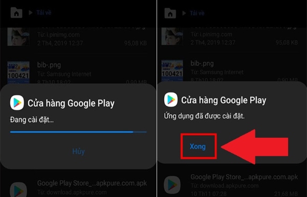Bước 4: Đợi thiết bị thực hiện hoàn tất cài đặt ứng dụng, người dùng nhấn vào nút Xong để hoàn thành cách tải CH Play cho điện thoại Samsung.