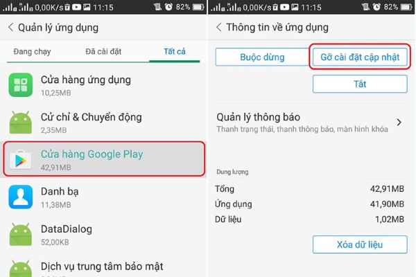 Gỡ và cài đặt cập nhật lại CH Play