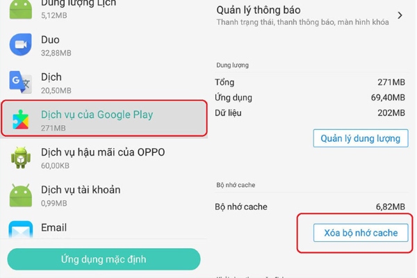 Xóa bộ nhớ cache dịch vụ Google Play