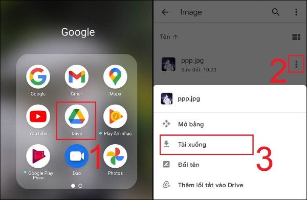Để tải file hay hình ảnh, video từ Google Drive về điện thoại Android trực tiếp, người dùng có thể thao tác theo các bước sau đây: