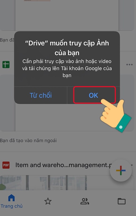 Tiếp theo, bạn hãy bấm vào mục Ảnh và video, cấp quyền cho Google Drive truy cập vào ảnh của bạn.