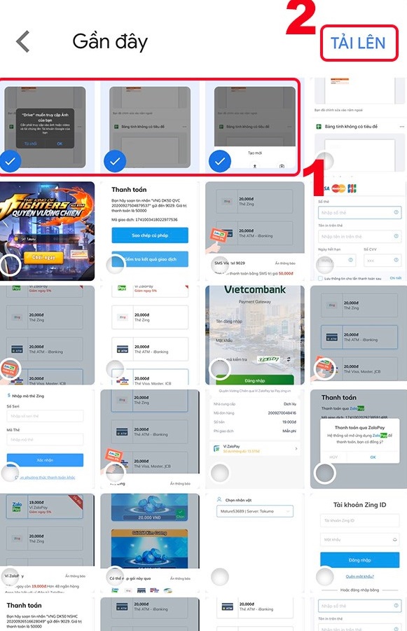 Tại đây, bạn hãy chọn file muốn tải lên và nhấn vào mục Tải lên. Sau đó, chờ một lúc để ứng dụng tải các file ảnh, video của bạn lên.