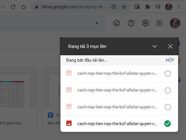 Sau đó, bạn chờ một chút để file ảnh, video được tải lên nhé.
